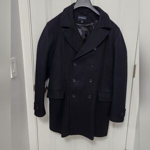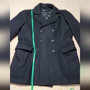 Banana Republic Wool Peacoat Jacket Mens Large Black Plaid Double Breasted