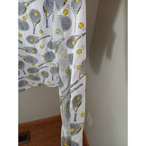 New Ibkul Long Sleeve 1/4 Zip Mock Neck Pullover Top. Size Small. White with a racket and ball print. Quick Dry. UPF 50+. Tennis, Performance, Sporty, Travel. New with tags. No flaws noted. Measures approximately 18" pit to pit, 23" shoulder to hem.