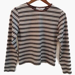 Vintage Derek Heart Brown Striped Fitted Long Sleeve Tee Size M