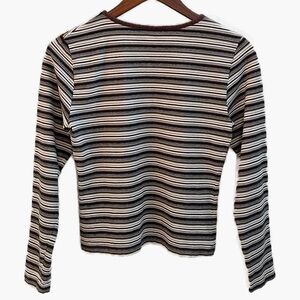 Vintage Derek Heart brown, black, and white striped long sleeve fitted tee. Lots of stretch. 95% cotton. Size M. Great pre-loved vintage condition.