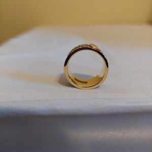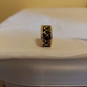 This stunning black and gold ring is a perfect addition to any jewelry collection. Its elegant design and shimmering accents make it ideal for any occasion. Size 6
