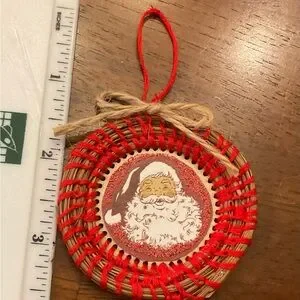 Add a touch of holiday cheer with this festive red Santa pine needle woven ornament. Perfect for decorating your home this season.