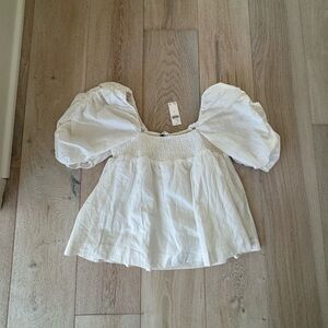 NWT Anthropologie English Factory White Short-Sleeve Ruched Top