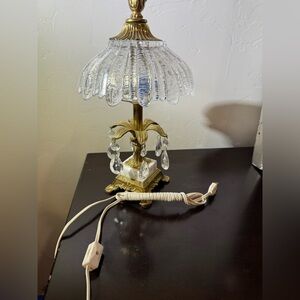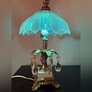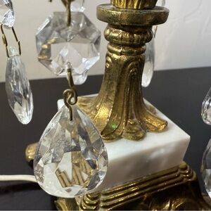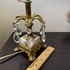 VINTAGE BOHEMIA GLASS CRYSTALS, BRASS/MARBLE BOUDOIR LAMP ~12”H USA MADE