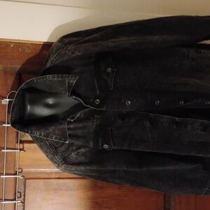 Stylish and versatile black denim jacket for women or men Perfect for casual outings and adding a rugged touch to your wardrobe.