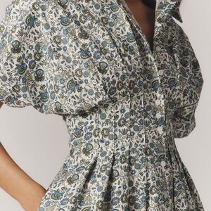Elegant floral dress with a blue and green pattern, perfect for any occasion. Enjoy the comfort and style of this beautifully designed piece.