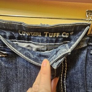 Cowgirl Tuff Women's Blue Jeans Feather Arrow Pattern 38 X 35 Denim Preowned