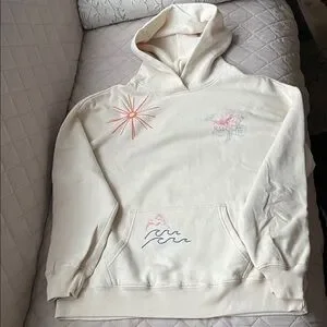 Hollister Cream Hoodie with Pink and Blue Accents