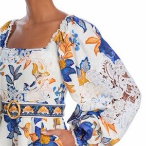 Stylish romper with vibrant floral print. Features long sleeves and a square neckline. Perfect for a chic look.