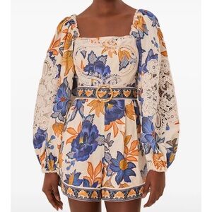 FARM Rio lace-trimmed floral playsuit XS