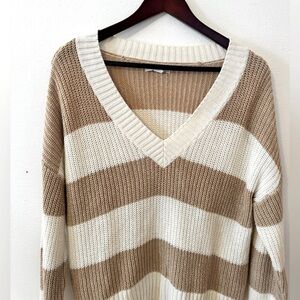 American Eagle Women’s Striped V-Neck Oversized Sweater Size Small