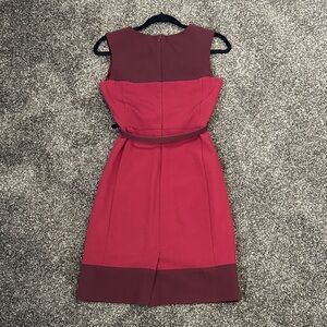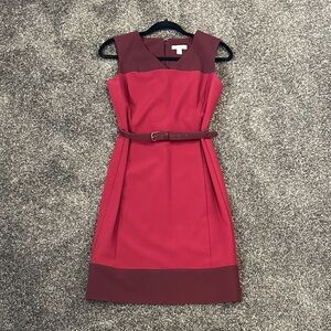 This classic two-toned burgundy sleeveless dress is perfect for any occasion. Comes with matching, fully detachable belt. Fully lined and made in New York & Company’s stretch line, making this dress ultra flattering. The rich color and sleek design make it a versatile addition to your wardrobe. Rarely worn and from a nonsmoking, pet free home.