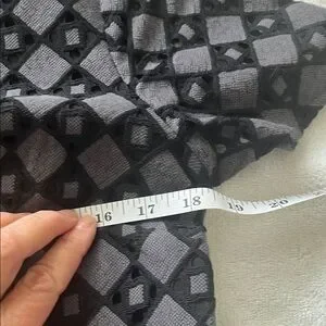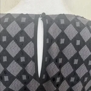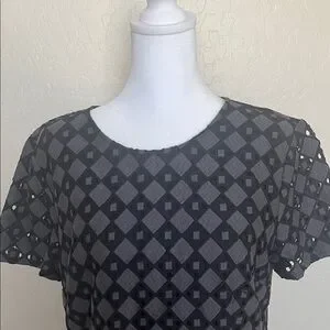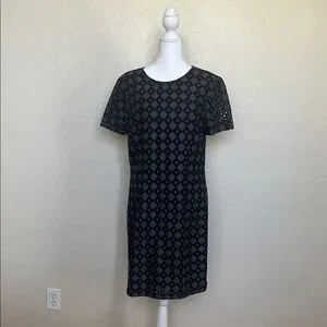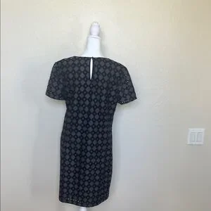 Banana Republic Cobalt Blue/Black shift dress with unique geometric pattern overlay. Short sleeves and round neckline. Lined. Measurements in photos. Size 12.