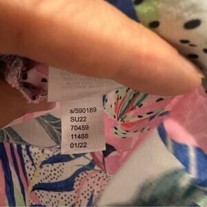 Tropical print shirt with button-up design. Features a mix of pink, blue, green, and white. Please see matching linen pants in my closet (medium tall) for the complete set- bundle to save!