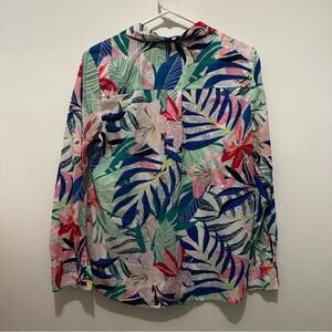 LOFT Palm Everyday Shirt Tropical Print Button-Up Top Blouse Womens size Medium