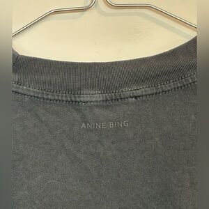 Charcoal tee featuring bold white graphic. Anine Bing branding with striking design.