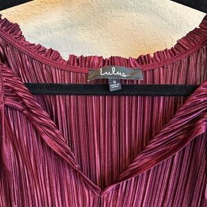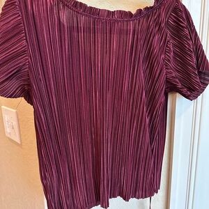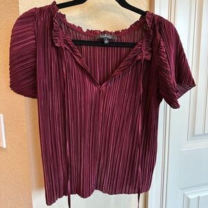 Chic pleated blouse in deep red. Features short sleeves and a stylish neckline. Perfect for versatile wear.
