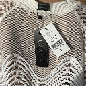 Elegant white mesh top with unique texture. Ideal for chic layering.
