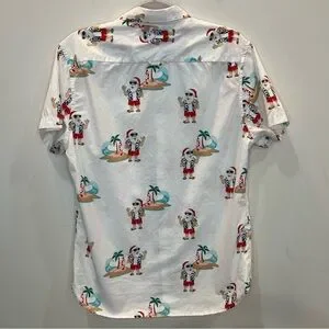Denim and Flower Santa Beach Short Sleeve Button Up Shirt Men’s Size M | Surfing