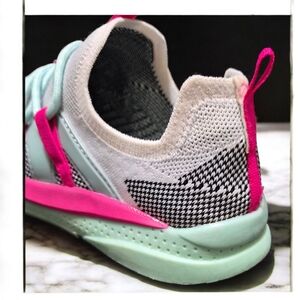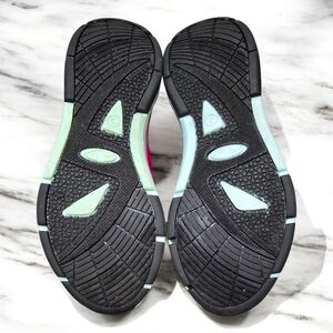 These stylish kids' sneakers feature a breathable white mesh design with vibrant pink and blue accents. Perfect for active play and everyday wear.