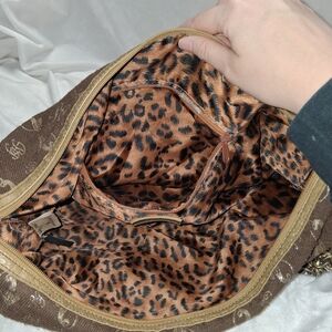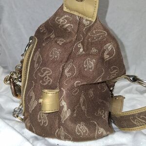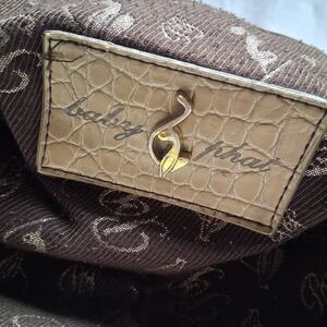 Stylish vintage Baby Phat handbag featuring a chic brown and tan design. Perfect for any occasion. Plenty of pockets and storage. A couple rhinestones are missing from the front of the bag, otherwise it is in very good condition.