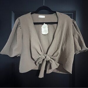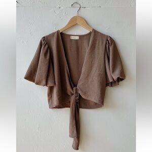 NWT Altar’d State Mocha Tie-Front Top (Matching Pants Available!)