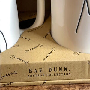 Rae Dunn Mugs Ceramic CAT DAD & MEOW Set New