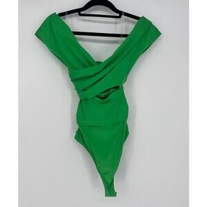 Fleur Du Mal Wrap Front Bodysuit in Peridot Green