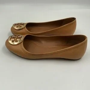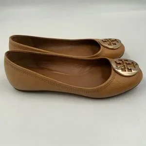 Keywords: Tory Burch, Ballet Flats, Leather Flats, Tan Shoes, Gold Logo, Classic Flats, Designer Shoes, Women's Shoes, Comfortable Flats, Slip On Shoes, Casual Shoes, Work Shoes, Everyday Flats