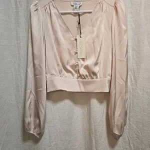 Nwt! Chic satin blouse with button detail. Long sleeves and V-neck design. Perfect for stylish outings. Size XS