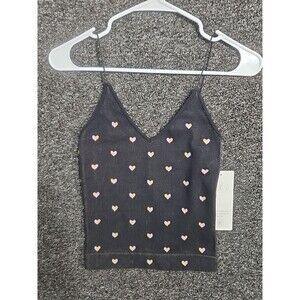 Aura M/L Juniors Women's Stretch Black Pink & Gold Hearts Tank Top Shirt NWT. This looks to be a juniors size but does have a lot of stretch, check measurements. It is brand new with tags but was liquidated as a shelf pull. While it has never been worn it may have been tried on. We encourage fair offers. We have many items like this so consider checking out our other listings to bundle or combine to save money on shipping.