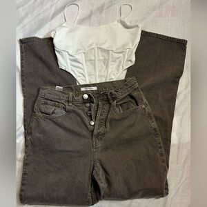 Chic dark brown jeans with a wide leg cut. Ideal for everyday style.