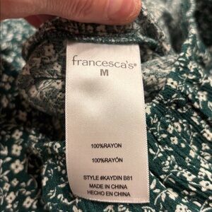FRANCESCA’S Audrey Parks Green White Floral Wide-Leg Cropped Jumpsuit MEDIUM