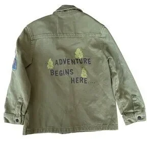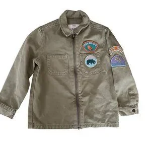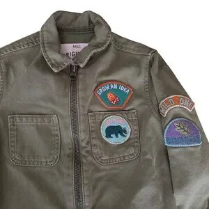 M&S Originals Boys Olive Green Adventure Jacket W/ Patches & Zipper Cotton Blen