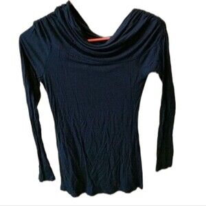 Navy Blue long sleeve top that hangs off your shoulder with stretchy material, size XS.