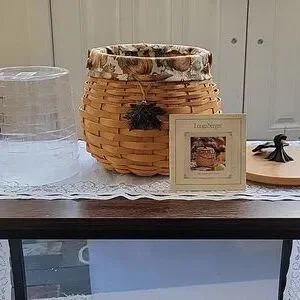 Longaberger 2001 Pumpkin Patch Basket. Very good preloved condition (see pics for minor wear). Comes with pumpkin fabric liner, Plastic protector and Lid. such a fun Autumn piece. Paperwork also included. About 9 inches tall to the top of the stem. About 8 in. wide. Bundle & Buy 3 items from my closet, get 10% discount!