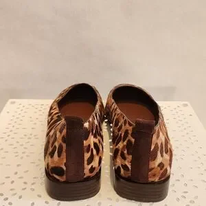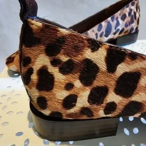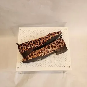 New without tags Essex Lane Elyn leopard print ballet flats with rounded/squared toe. Made from cow hair/leather upper, textile man-made lining and man-made sole, and a 7/8" heel. Size 7 1/2 M/38