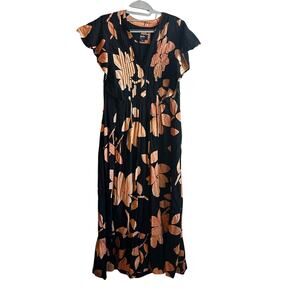 Anthropologie Maeve Black Flutter Sleeve Maeve Cassandra Maxi Dress XS
