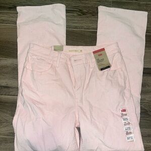 NWT never worn. the last picture is not a stain it’s a shadow from me taking a picture of the tag. Chic and versatile straight leg jeans. Soft pink hue. Ideal for casual wear.
