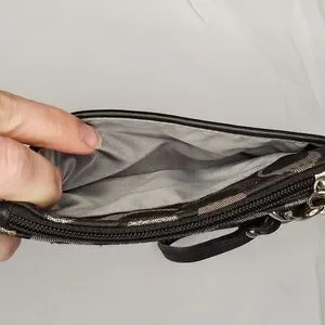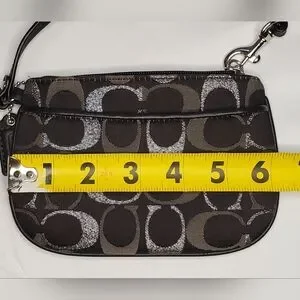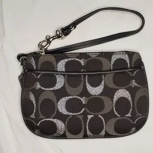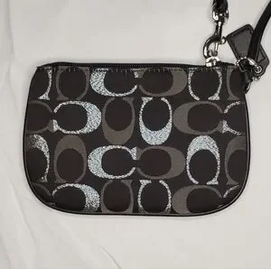 "Authentic Coach change bag - wristlet- wallet. Zip top with slip pocket on exterior. Tag included/shown. Excellent condition. Approximate dimensions 6 x 4.25"" Black, silver, and gray. Please refer to pictures for closer view of item condition. Colors may vary based on shadows, lighting, monitor, display settings, etc. Thank you!