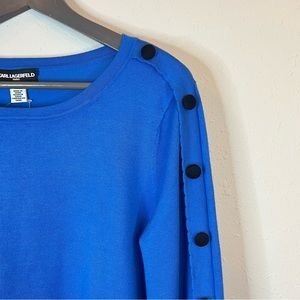 Karl Lagerfeld True Blue Buttons Long Sleeve Women’s Sweater Size Medium NWT