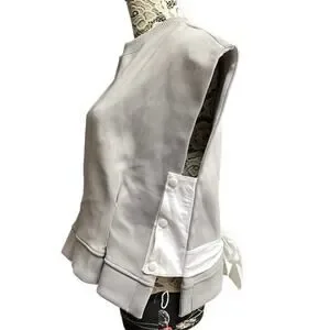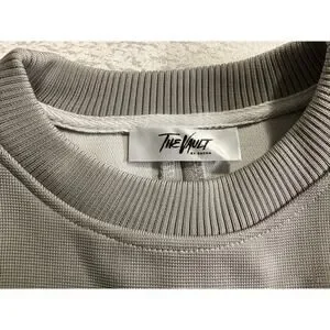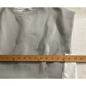 The Vault sleeveless ribbed knit boxy silhouette top pleated front Large gray