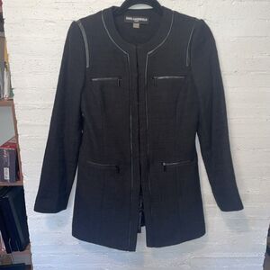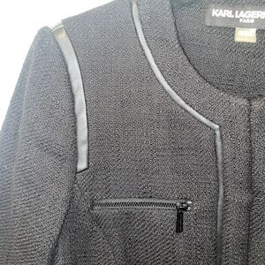 Karl Lagerfeld Tweed Zipper Pocket Leather Accent Jacket 2 Rock-Chic Classic
