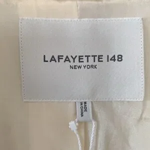 Indulge in luxury with this Lafayette 148 NWT boyfriend blazer! Crafted from a premium 50% virgin wool, 50% viscose blend, it offers a soft, structured fit with dropped shoulders, single-breasted button front, notch lapel, flap pockets, button cuffs, and vented hem. In elegant buff, it’s perfect for layering from office to evening.