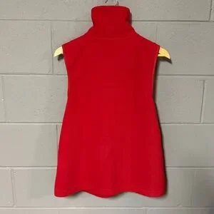 Vibrant scarlet fleece vest with zip front and dual chest pockets.