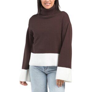 LAUNDRY Brown Two Tone Turtleneck Sweater