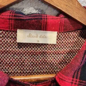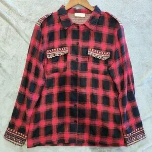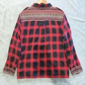 Altar'd State Womens Red Black Fair Isle Trimmed Button Up Shirt Size M Western