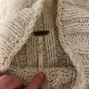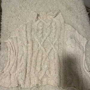 Elegant cream turtleneck with intricate cable knit design. Soft and stylish for any occasion.