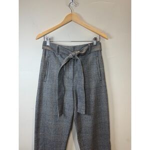 Aritzia Wilfred Jallade Plaid Wool Trousers Women’s Size 6 Gray Black Tie Front
