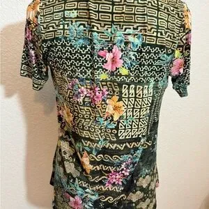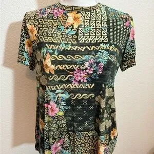 Johnny Was Multicolor Floral Geometric Short Sleeve Top Crew Neck